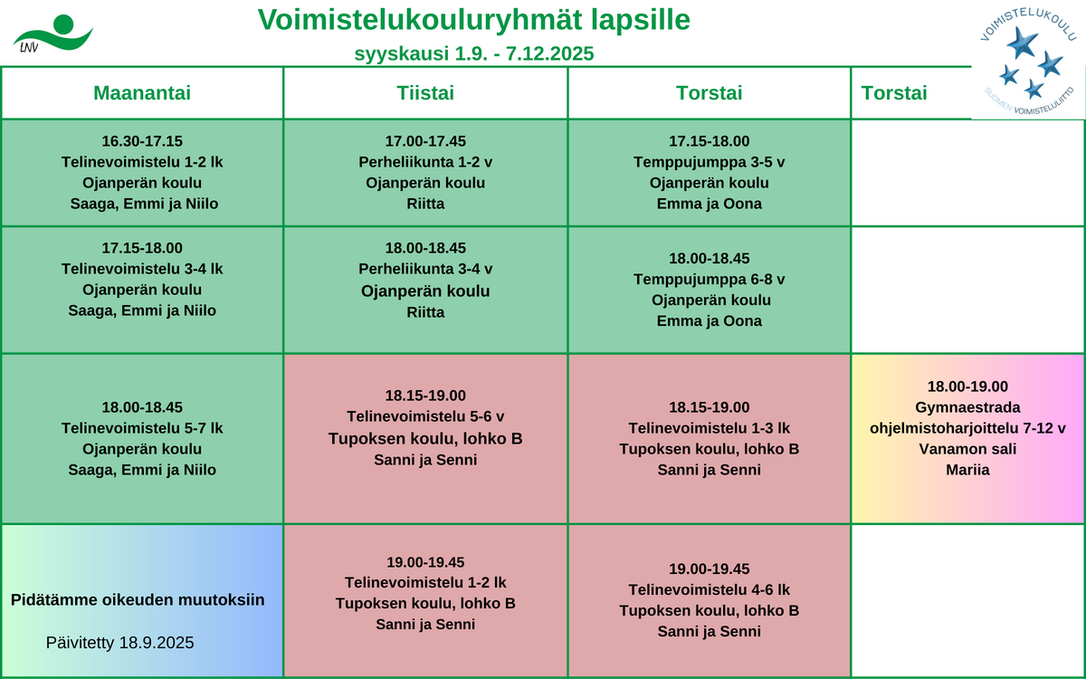 Lasten voimistelun linjaus